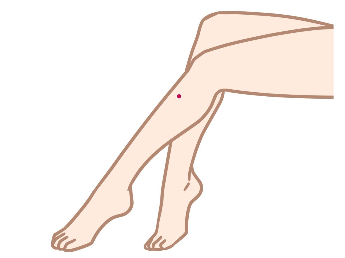 治療ではまず全身の緊張緩和のために臀部のツボに鍼を行い、続いて首周辺の緊張軽減を目的に手足のツボに施術を行った。