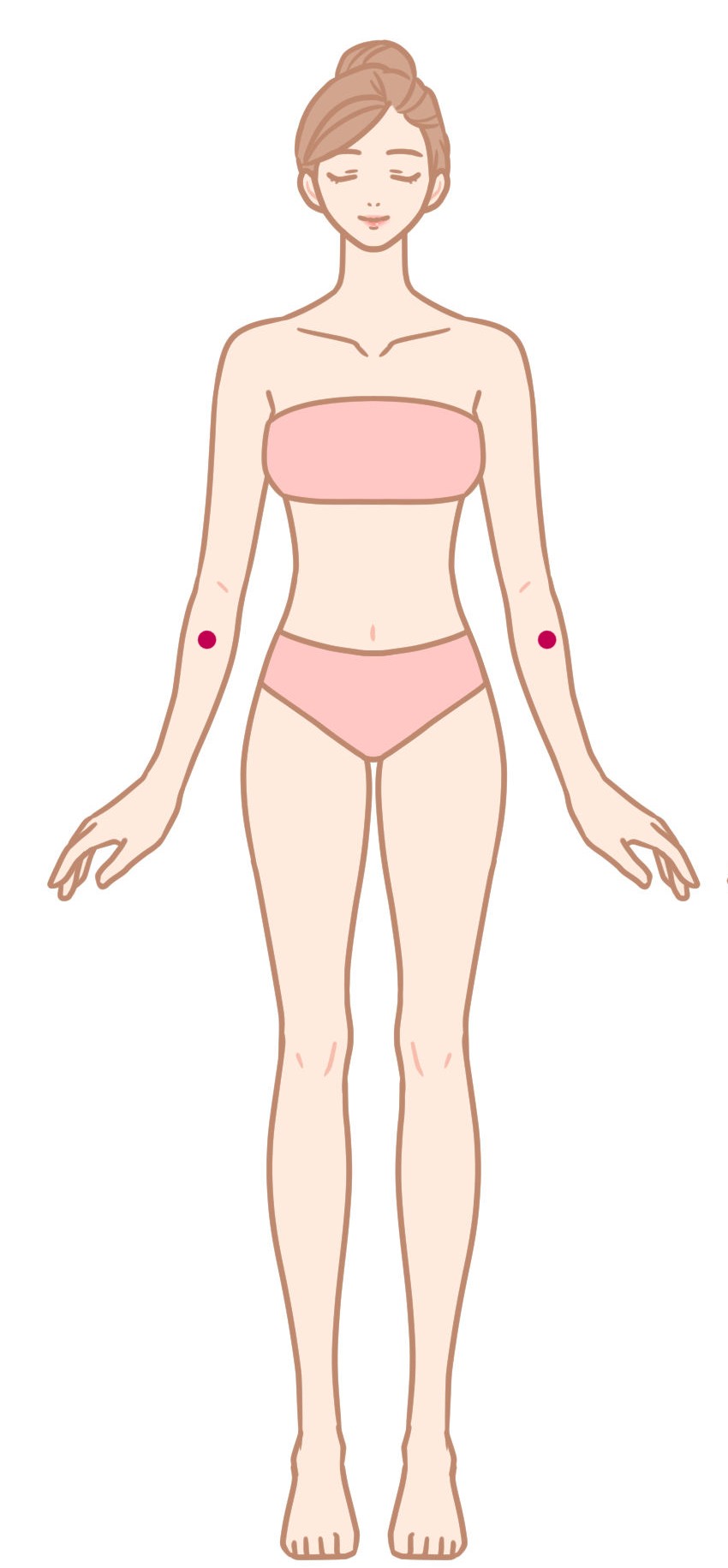 治療では、硬結を緩めるため、腕、足と背中のツボに鍼を施した。施術後口をイーとしたときに歯が見えるようになった。