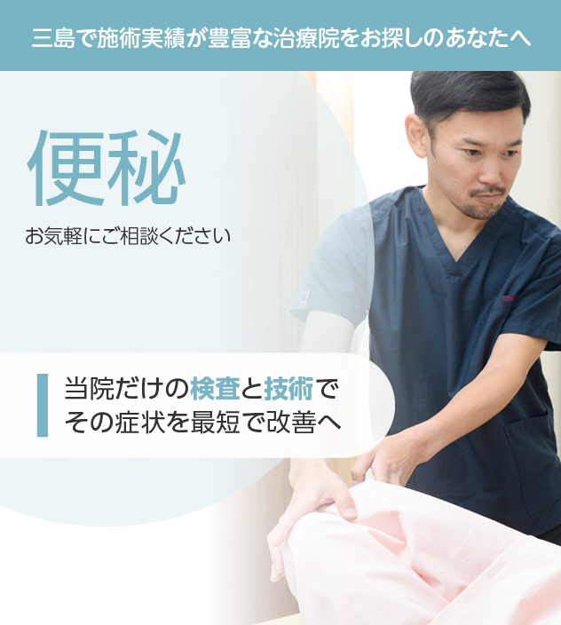 便秘でお悩みなら、充実した検査と豊富な施術実績を誇る当院にお任せください。