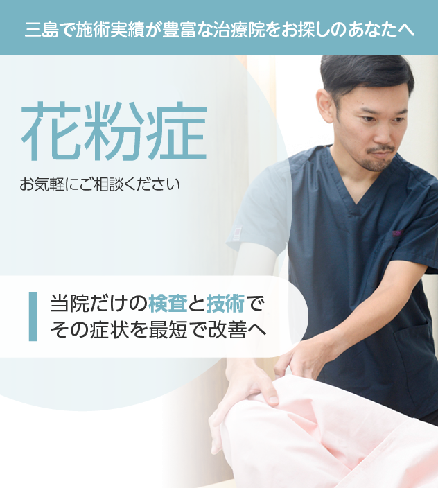 花粉症でお悩みなら、充実した検査と豊富な施術実績を誇る当院にお任せください。