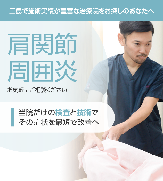 肩関節周囲炎でお悩みなら、充実した検査と豊富な施術実績を誇る当院にお任せください。