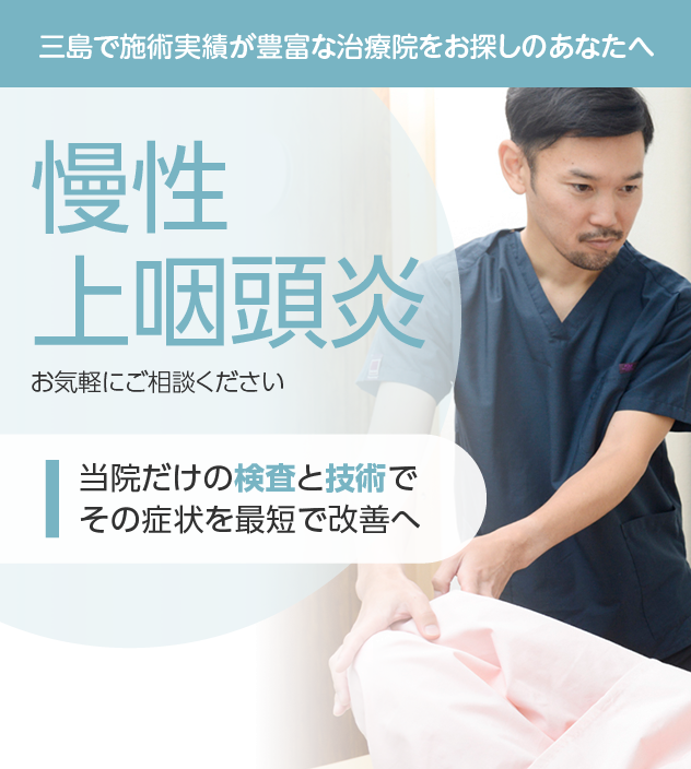 慢性上咽頭炎でお悩みなら、充実した検査と豊富な施術実績を誇る当院にお任せください。