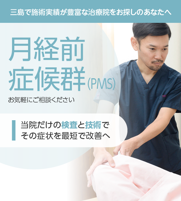 月経前症候群でお悩みなら、充実した検査と豊富な施術実績を誇る当院にお任せください。