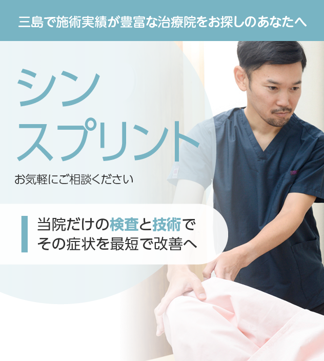 シンスプリントでお悩みなら、充実した検査と豊富な施術実績を誇る当院にお任せください。