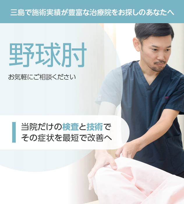 野球肘でお悩みなら、充実した検査と豊富な施術実績を誇る当院にお任せください。